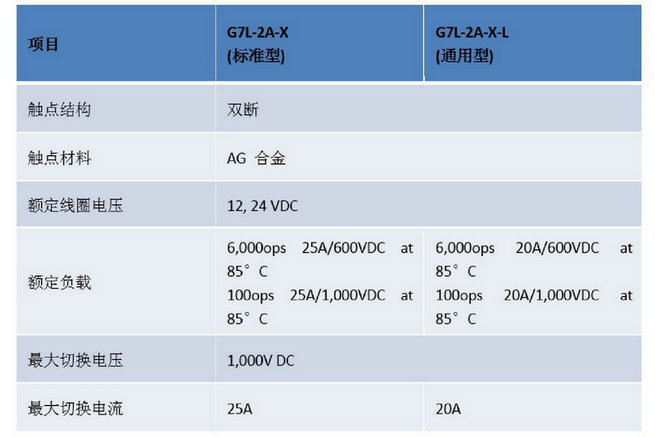 G7L-X功率繼電器采用安全設計,消耗功率僅2.3W,接點間隙為6.0mm,產品分為標準型G7L-2A-X和通用型號G7L-2A-X-L兩種型號,均符合光伏逆變器安全標準,并通過美國UL、歐盟RoHS、德國VDE認證,產品性能經過嚴格測試,具有良好的耐電壓、耐沖擊、耐震動、耐久性。工作溫度范圍為攝氏-40至85度(無結冰、無凝露),可適應嚴苛的工作環境。
