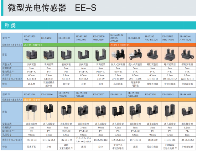 歐姆龍EE-SX系列槽型對射光電傳感器,檢測距離1-15mm可選,響應速度小于1ms,具分辨率高,備NPN 、PNP常開常閉可選,且安裝形式豐富。