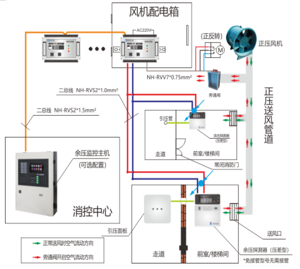 智能余壓控制系統(tǒng)的目的是阻止煙霧擴(kuò)散,順利打開逃生門,且在逃生過(guò)程中遲可能不因過(guò)多煙霧吸入,保護(hù)人員安全。