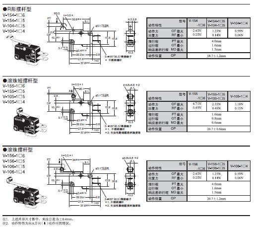 V-15歐姆龍微動開關