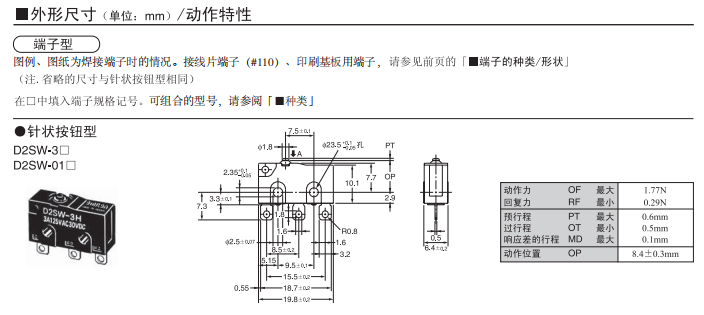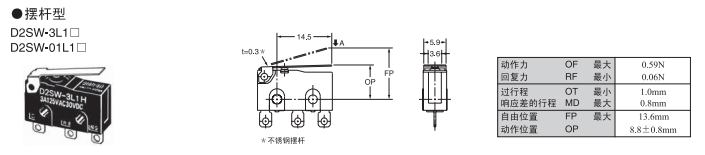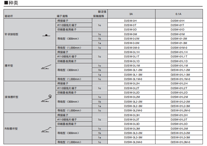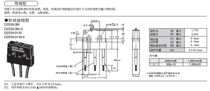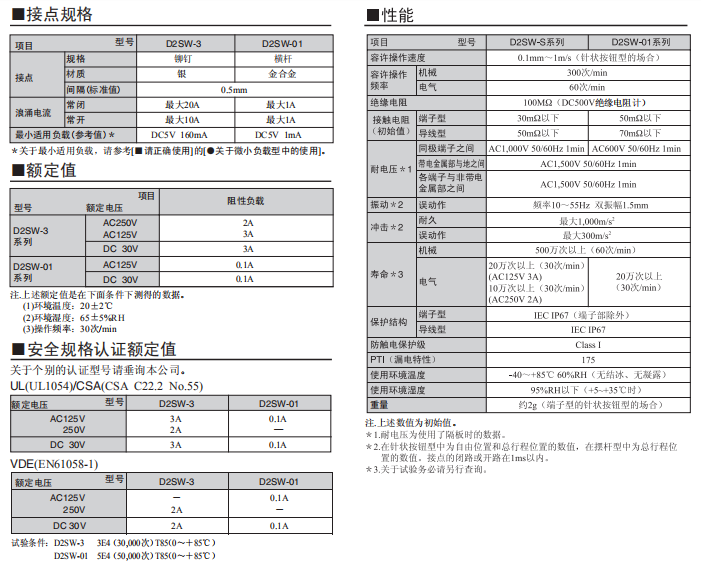 D2SW 密封型超小型基本歐姆龍開關(guān)