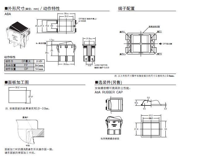 A8A 系列船型歐姆龍開關