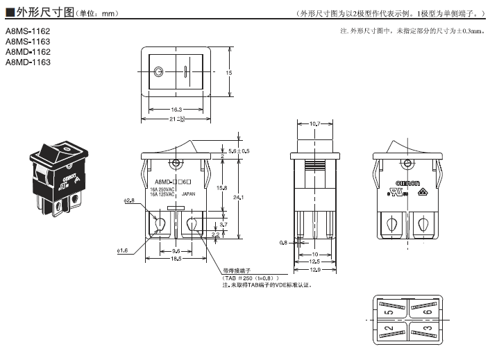 實現(xiàn)16A開關(guān)性能的小型船形開關(guān) 小型、16A的開關(guān)性能。 可進(jìn)行一觸式安裝。 符合UL、cUL認(rèn)證,EN標(biāo)準(zhǔn)適用品。