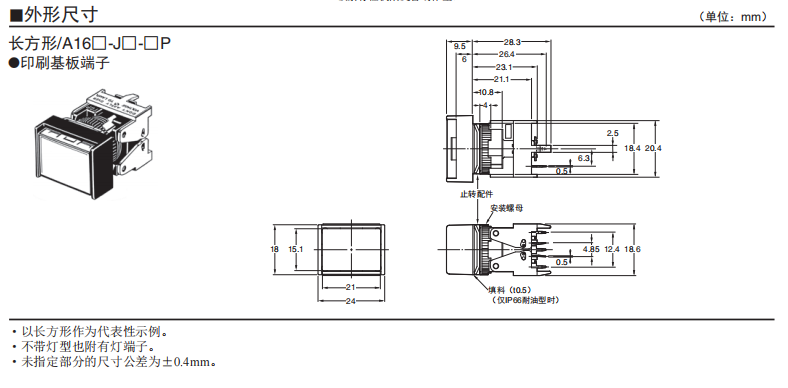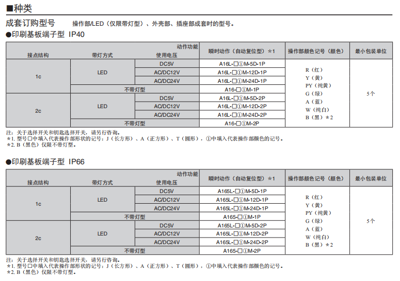 A16□-P 按鈕歐姆龍開關(分離式)(帶燈·不帶燈)(φ16)