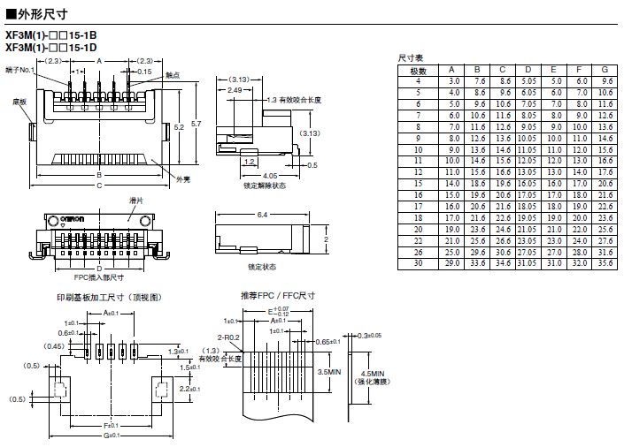 XF3M 旋轉后鎖結構(端子間距0.5mm、1.0mm、雙面觸點類型)