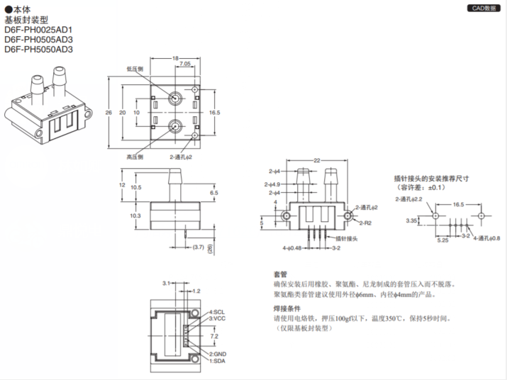 MEMS差壓傳感器D6F-PH0505AD3