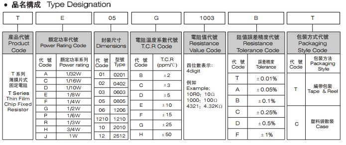 薄膜片式固定電阻器 TC03D1001BT